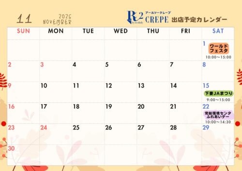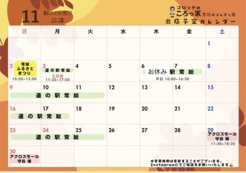 【11月の定休日・キッチンカー出店場所について】